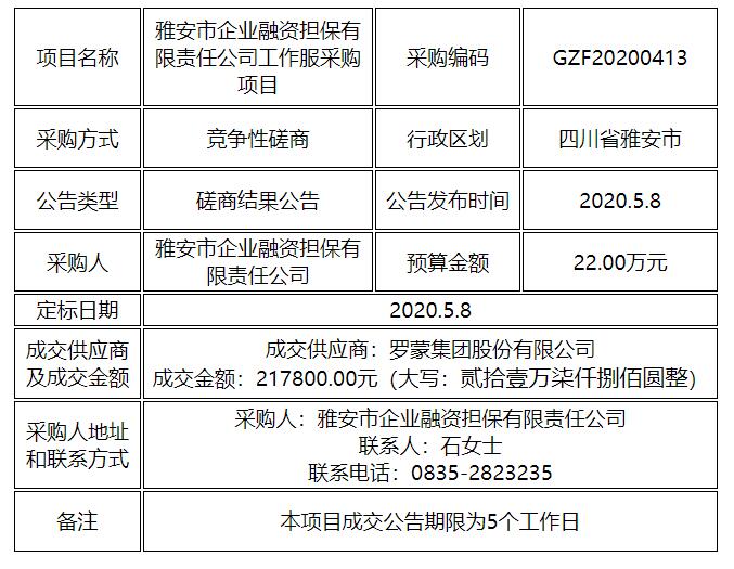 工作服采購(gòu)項(xiàng)目競(jìng)爭(zhēng)性磋商結(jié)果公告